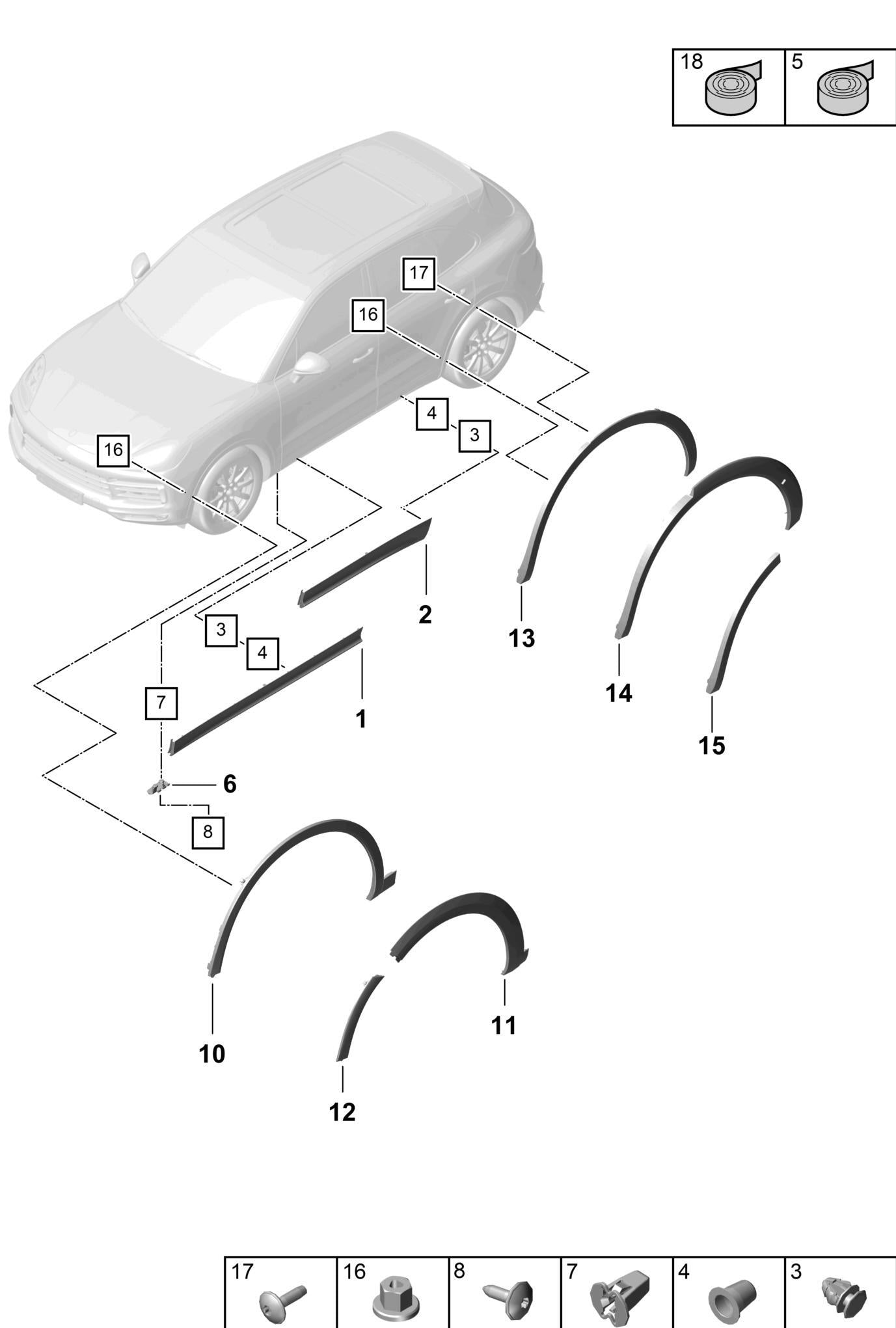 Enhance the sleek design of your Porsche Cayenne 2020 with the Rear Right Wheel Arch (EYEBROW) 9Y0854732K. This compatible wheel arch adds a touch of sophistication and aerodynamics to your vehicle. Made with high-quality materials, it offers long-lasting durability for a seamless fit and a polished finish.
