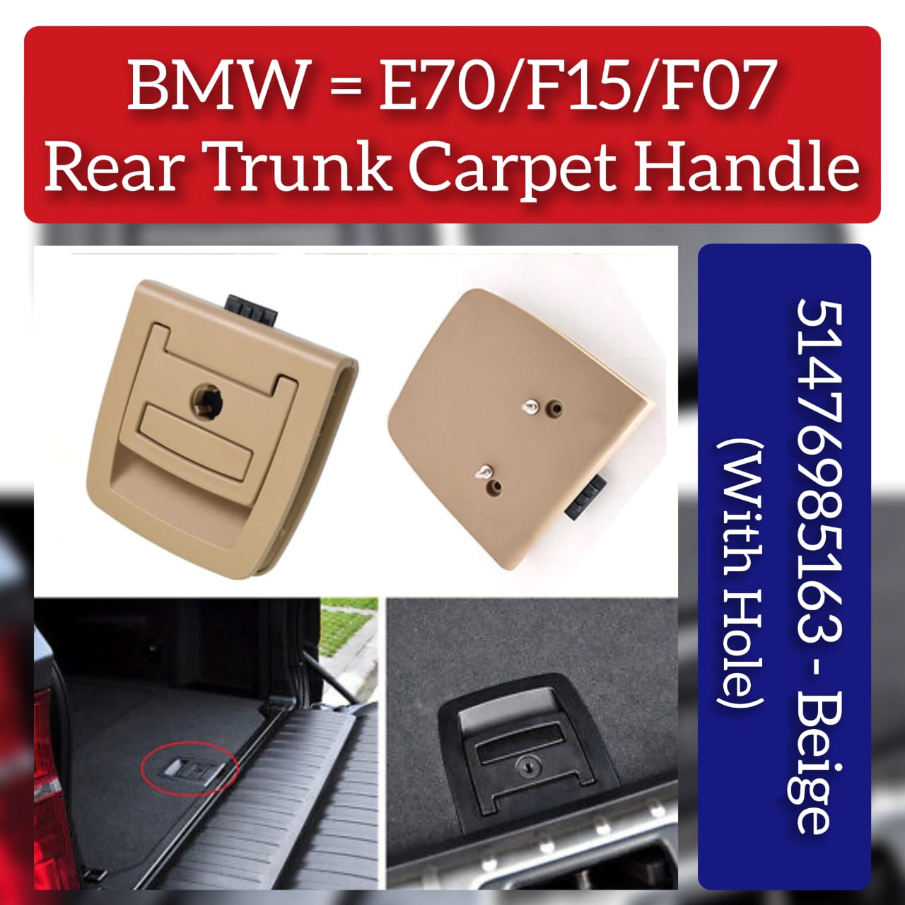 The Rear Trunk Carpet Handle Beige is a compatible handle for BMW & X5 E70 2006-2014 & X5 F15 2014-2019 & BMW 5 Series F07 vehicles. Crafted from high-quality materials, this handle offers a secure and convenient grip for easy opening and closing of your trunk. A must-have for any BMW owner.