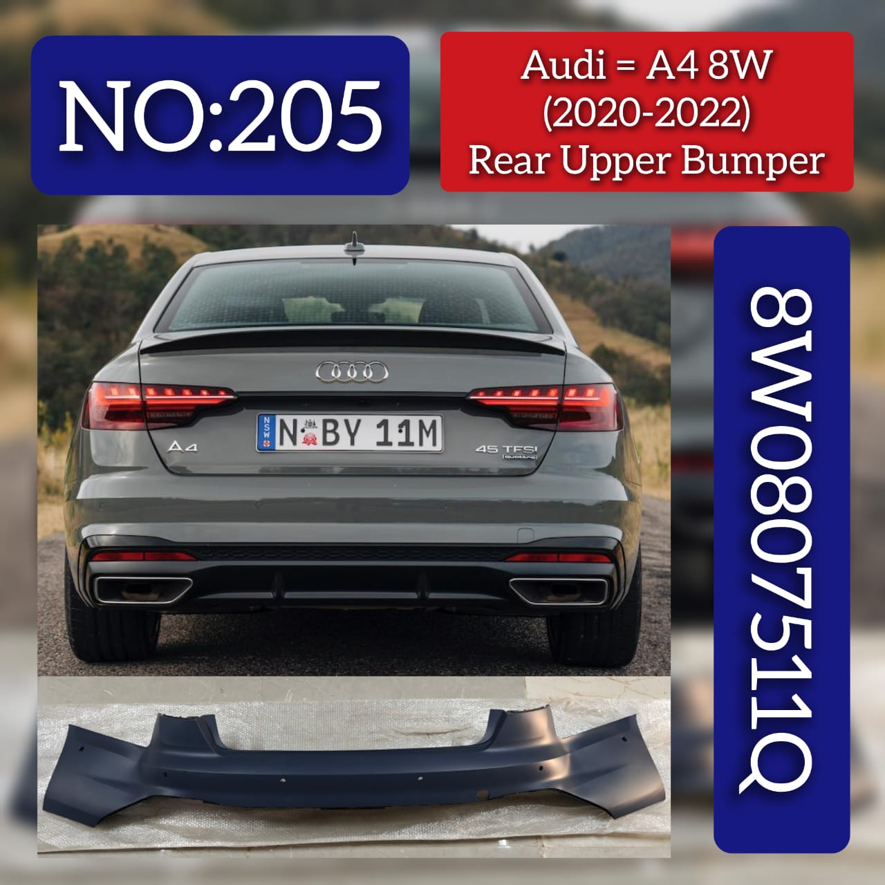 This Rear Upper Bumper 8W0807511Q is designed specifically for the AUDI A4 8W model, ensuring precise fit and optimal protection. Manufactured to meet OEM standards, it offers durability and maintains the vehicle’s original aesthetics. Ideal for replacing damaged or worn bumpers, it helps preserve structural integrity and enhances safety. Tag No.205 confirms its compatibility, making it a reliable choice for professional repairs and restorations.