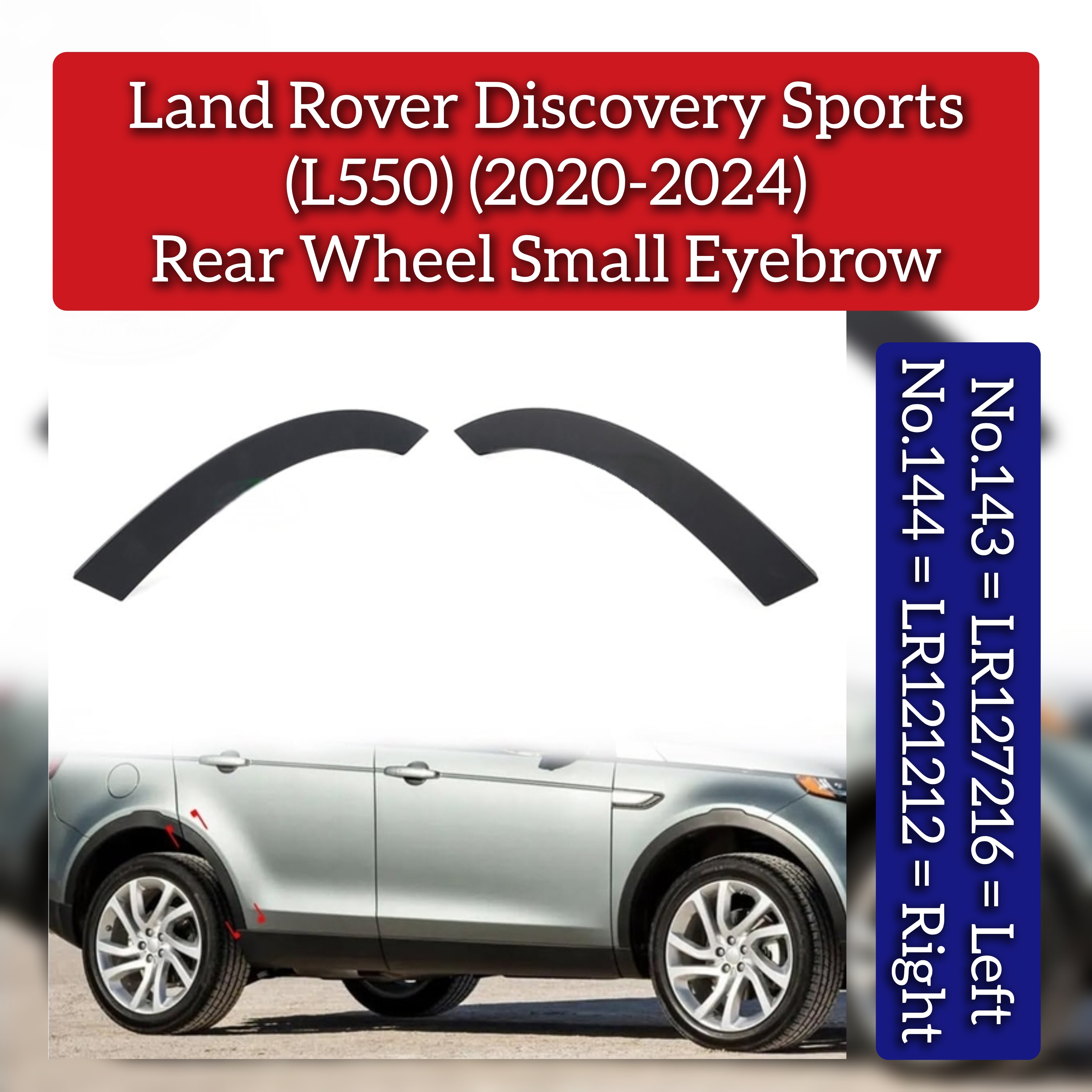 Designed specifically for Land Rover Discovery Sport - L550 models (2015-2019), these rear wheel eyebrows (Right LR121212 and Left LR127216) ensure a perfect fit and seamless integration. Manufactured to meet OEM standards, they provide durable protection to the wheel arches against debris and wear, preserving your vehicle’s bodywork and enhancing its rugged appearance. Ideal for maintaining the integrity and aesthetic of your Discovery Sport, these components deliver reliable performance and long-lasting durability. Tags No.143 & 144 included for precise identification.