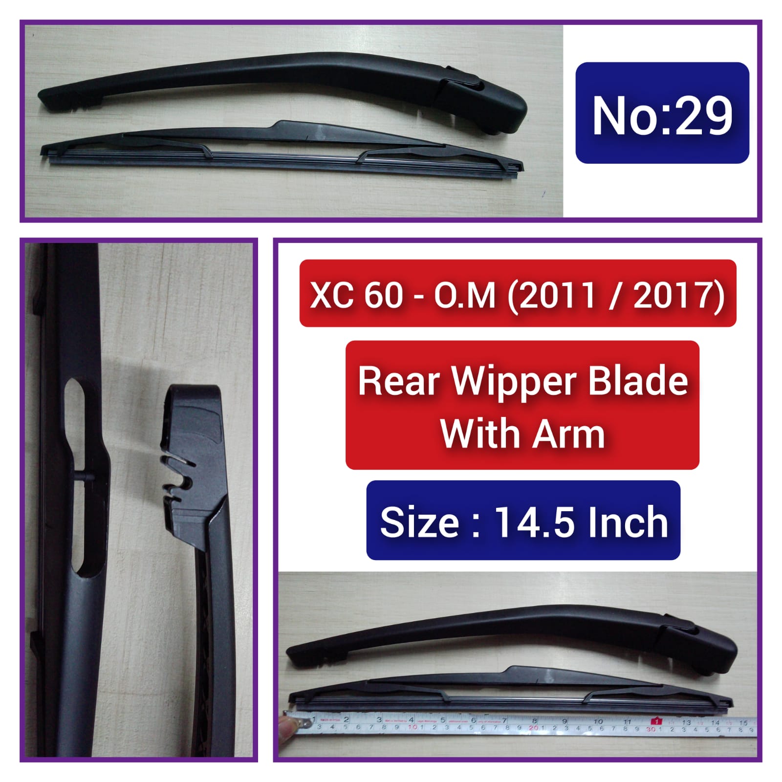 This Rear Wiper Blade (14.5 Inch) With Arm is specifically designed for VOLVO XC60 O.M 2011-2017. It provides excellent wiping performance and durability, ensuring a clear rear view for safer driving. Made with high-quality materials, it is a reliable and compatible choice for your vehicle.