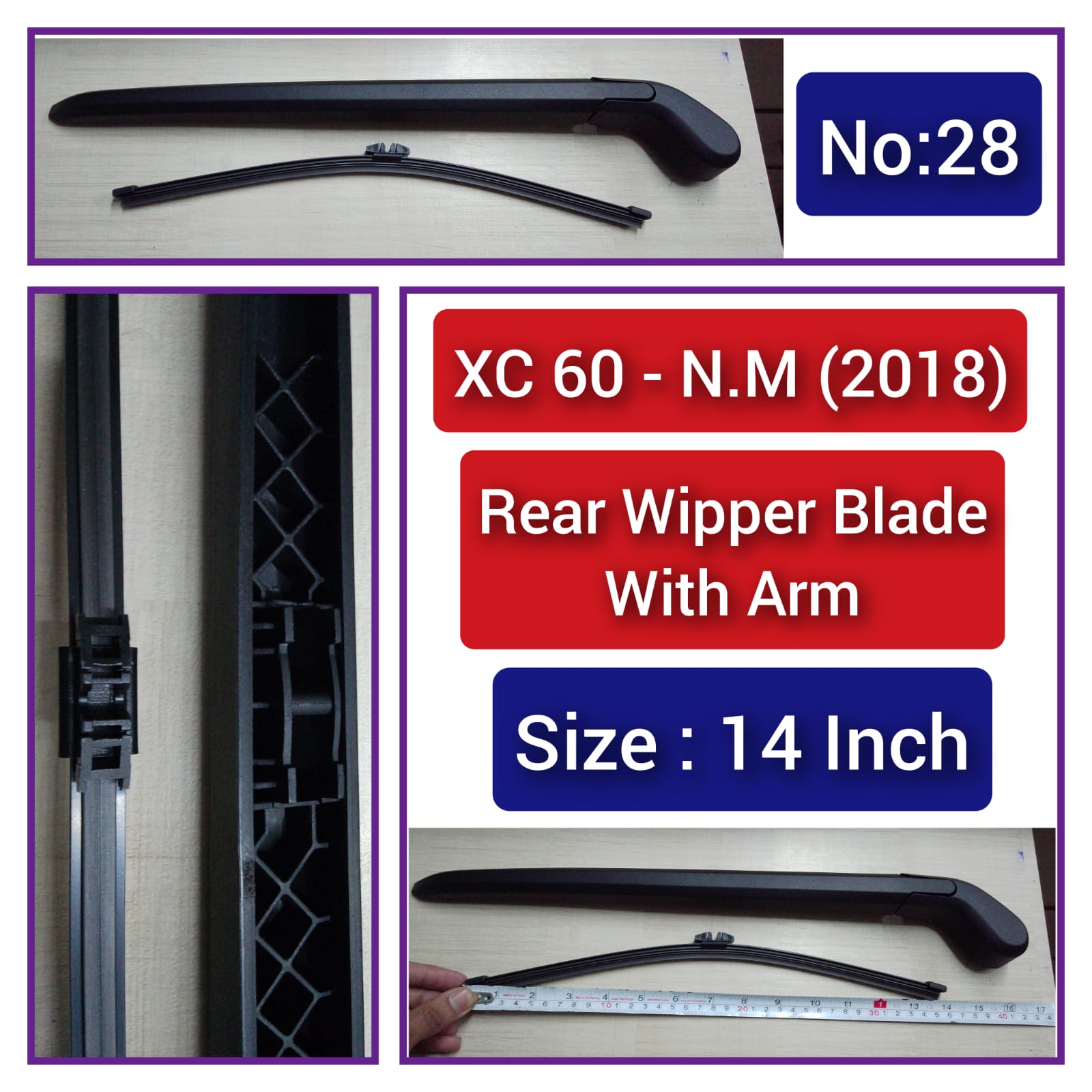 As an industry expert, experience the compatible, 14 inch Rear Wiper Blade and Arm for the VOLVO XC60 N.M 2018 Tag-WBR-28. Keep your rear windshield clean and clear with this efficient wiper blade, designed specifically for your vehicle model. Trust in its reliable performance for an improved driving experience.