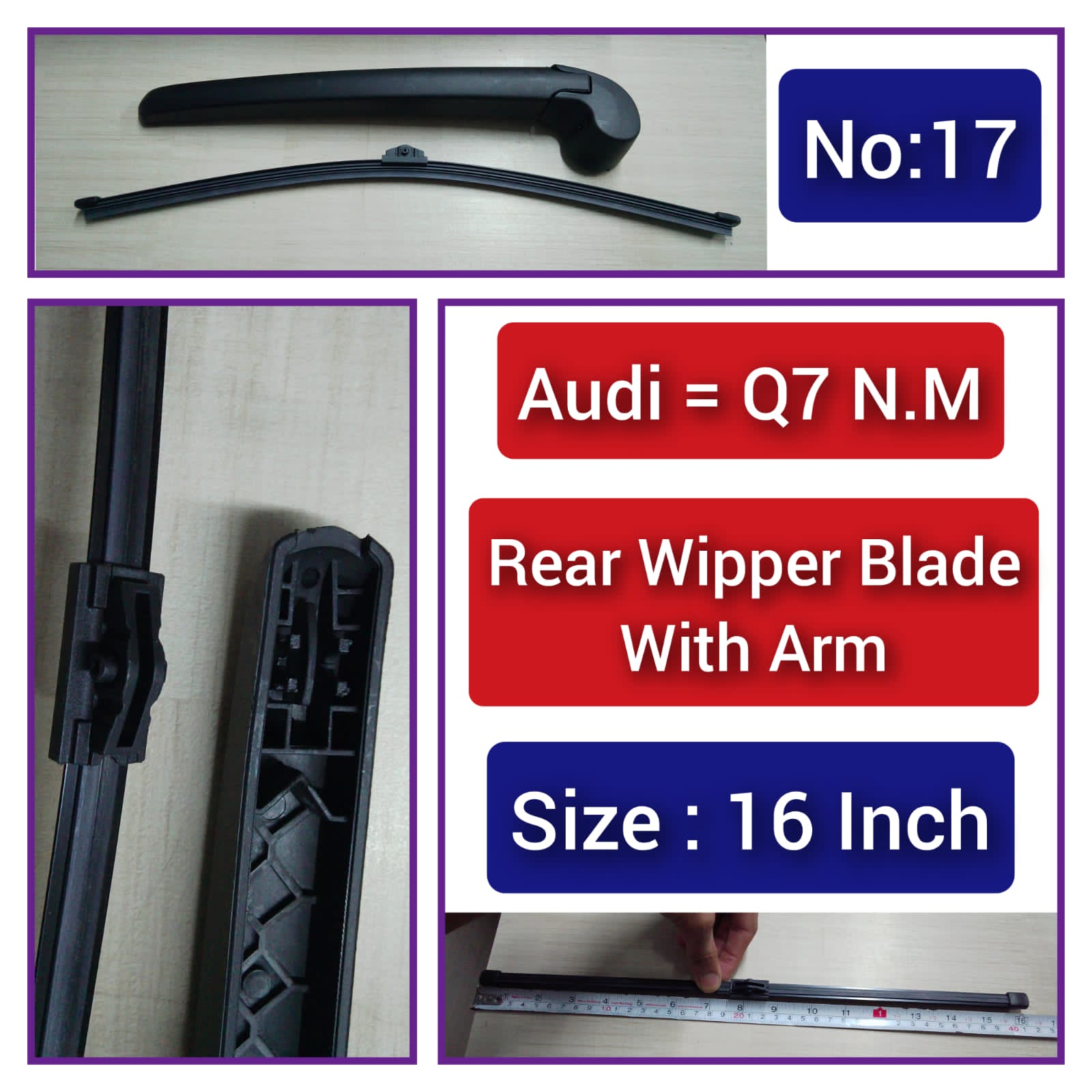 Expertly designed for your AUDI Q7 N.M . this 16-inch Rear Wiper Blade with Arm ensures a clean and clear rear view. Its precise fit and quality materials provide long-lasting performance, making it a reliable addition to your vehicle. Keep your windshield spotless in any weather with this essential wiper blade.