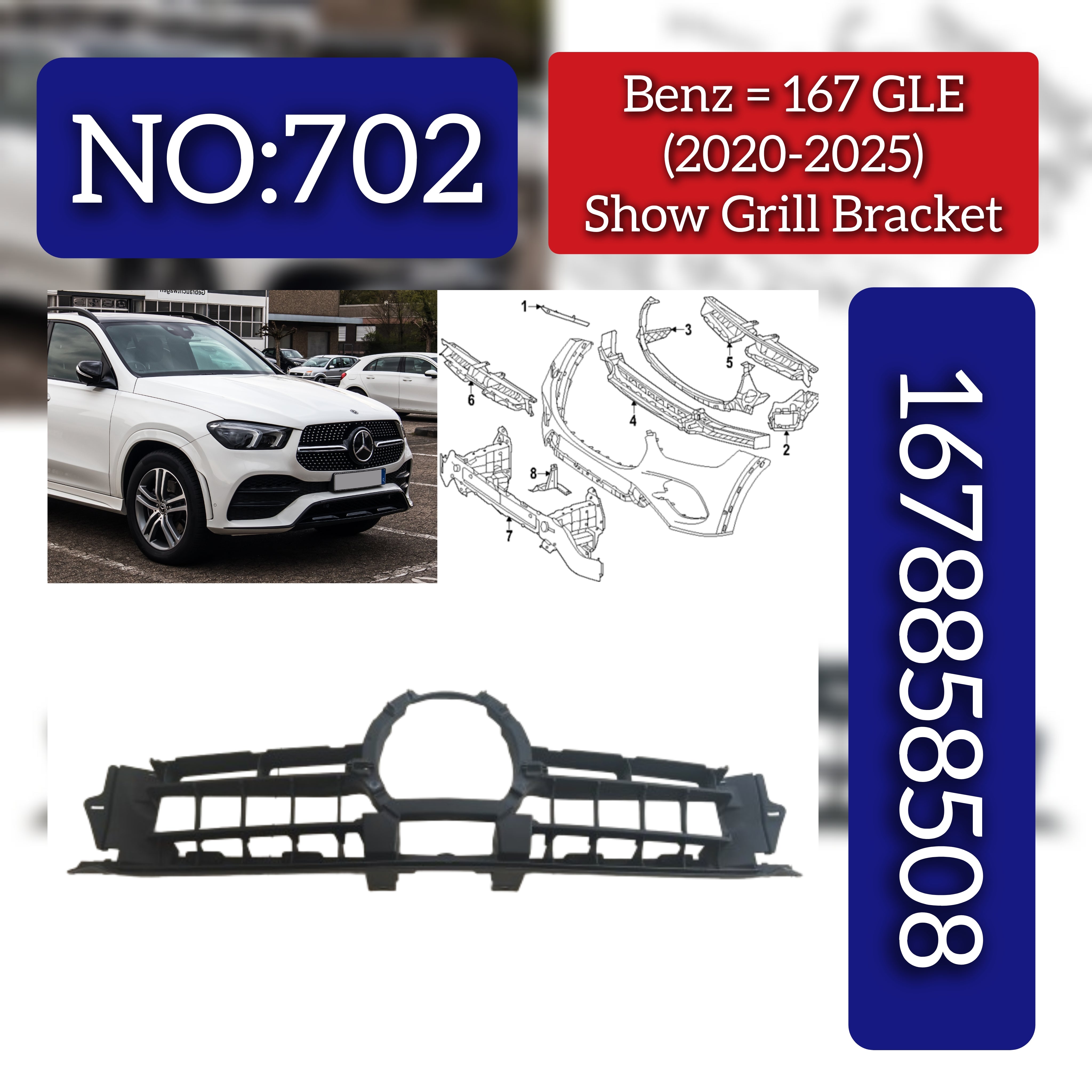 This Show Grill Bracket 1678858508 is designed specifically for the Mercedes-Benz GLE Class W167 models from 2020 to 2025. Engineered for precise fitment, it ensures secure attachment of the front grill, maintaining the vehicle’s structural integrity and aesthetic appeal. Crafted to meet OEM standards, this bracket offers durability and reliable performance, making it an essential replacement part for maintaining your GLE’s original quality. Tag No.702 confirms its compatibility and authenticity for professional use.