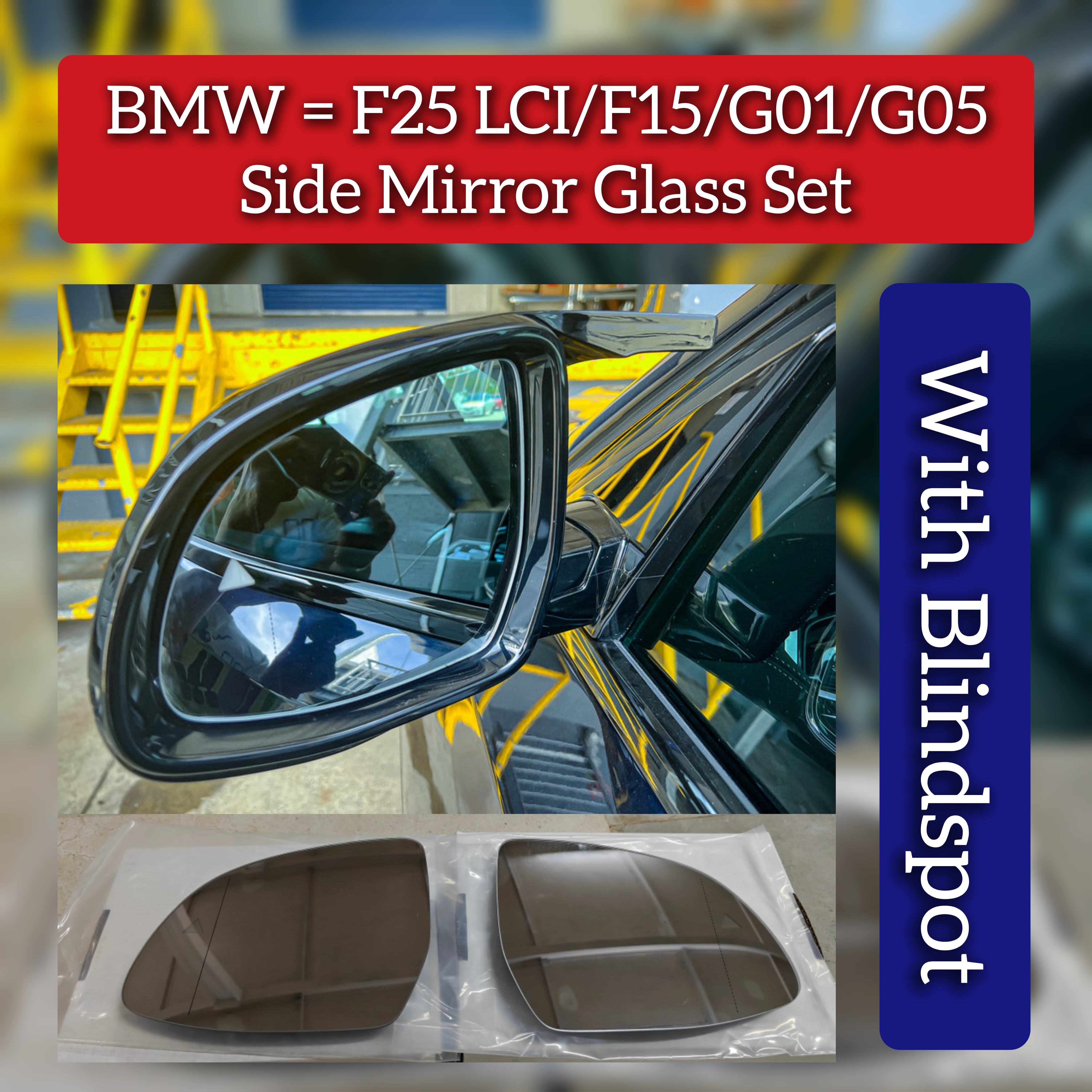 Upgrade your BMW X3 (F25) and X5 (F15, G05, G01) with this precision-engineered Side Mirror Glass Set featuring integrated blind spot detection for both right and left sides. Designed to enhance safety by improving visibility and alerting you to vehicles in your blind spots, this set ensures confident lane changes and safer driving. Crafted to match OEM specifications, it offers seamless fitment and reliable performance, making it an essential upgrade for maintaining your vehicle’s safety standards.