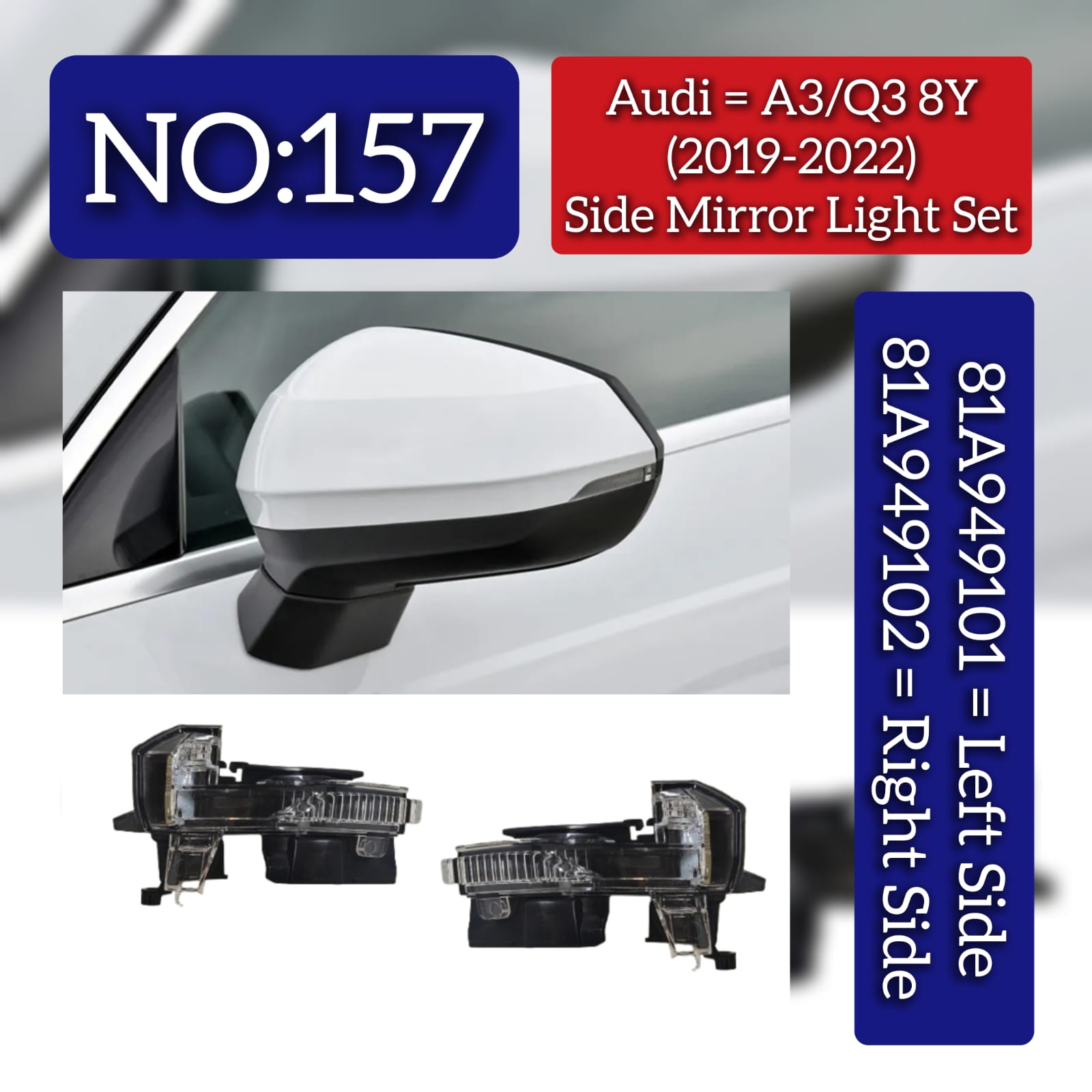 Enhance your Audi A3 or Q3 with this precision-engineered Side Mirror Light Set, featuring left (81A949101) and right (81A949102) units. Designed for seamless compatibility, these lights ensure optimal visibility and safety during lane changes and turns. Manufactured to meet OEM standards, they provide reliable performance and a perfect fit, maintaining your vehicle’s original aesthetics and functionality. Ideal for professional repairs or upgrades, this set supports clear signaling and improved road awareness.