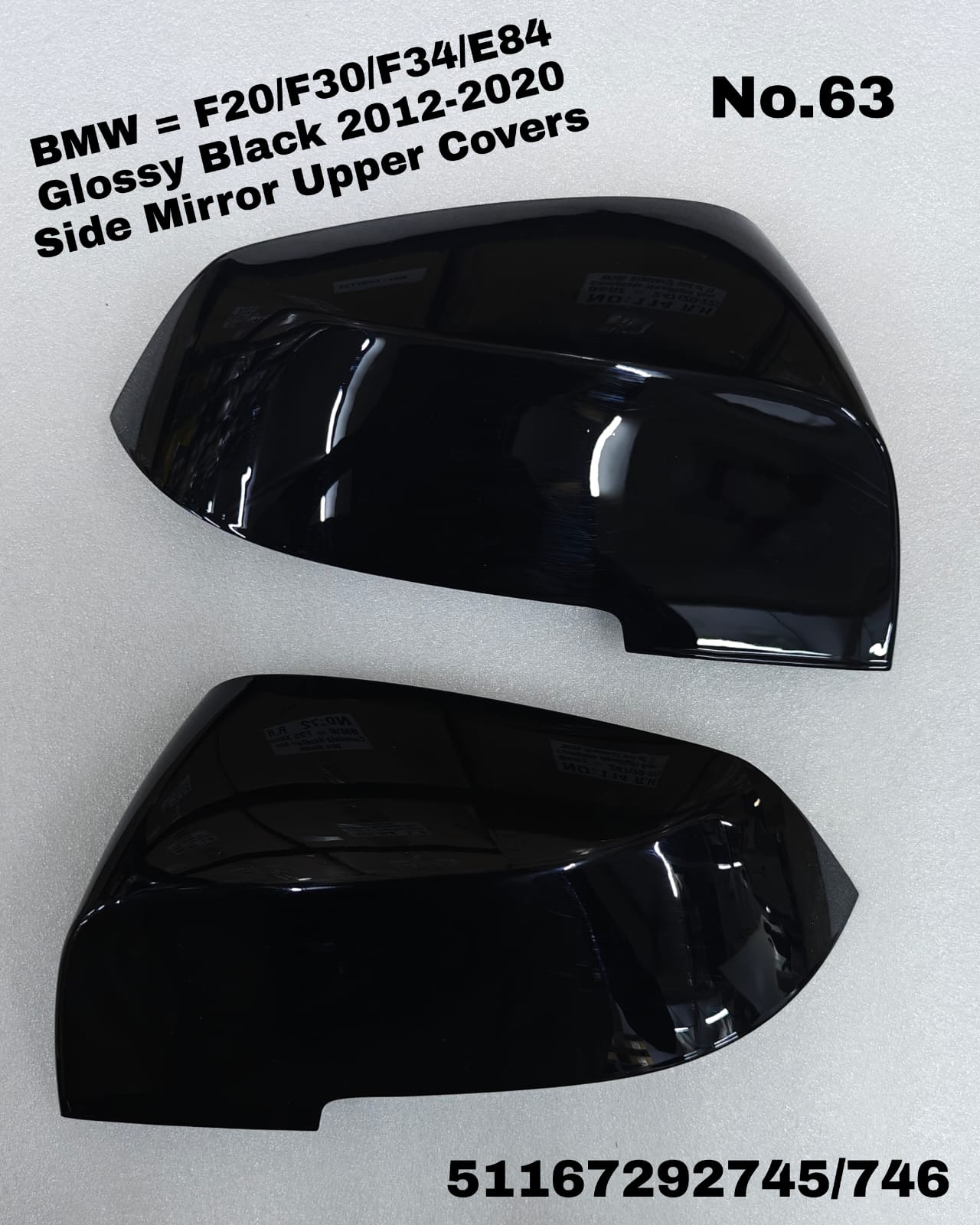 These glossy black Side Mirror Upper Covers are designed specifically for BMW models F20, F30, F34, and E84 from 2012 to 2020. Featuring part numbers 51167292745 (left) and 51167292746 (right), they ensure a precise fit and maintain the vehicle’s original styling. Crafted for durability and a sleek finish, these covers protect your mirror housings from damage while enhancing your BMW’s appearance. An expert solution for those seeking both prot