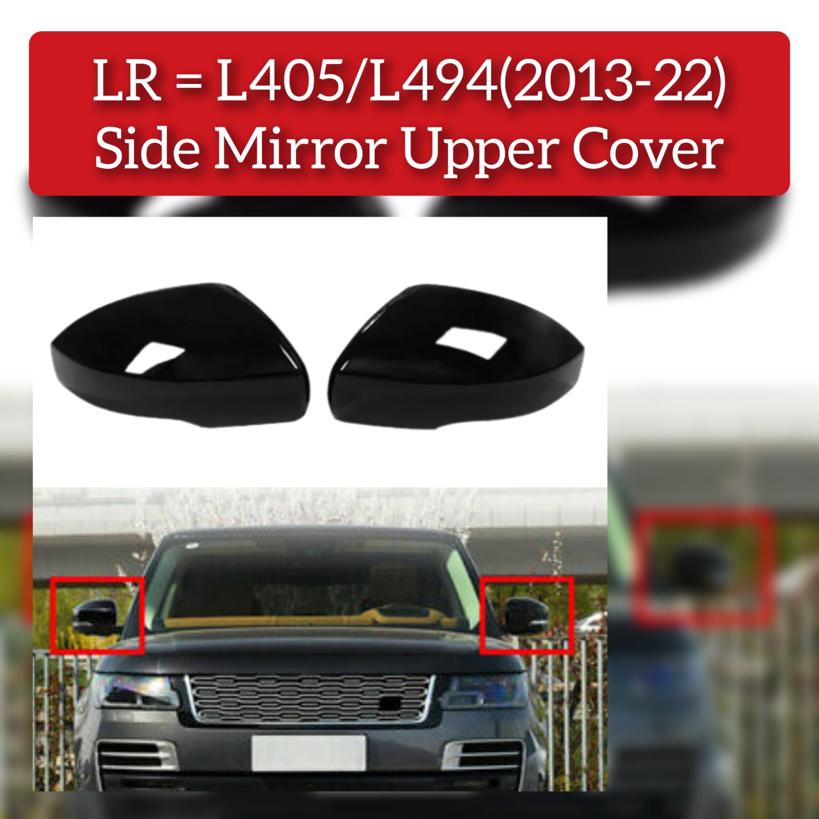 Upgrade your vehicle with the Side Mirror Upper Cover for Range Rover, LANDROVER, and Range Rover Sport - L494. This high-quality cover provides full coverage and a sleek look for your side mirrors, giving your car a more stylish appearance. Made from durable materials, it is built to last and enhance your driving experience. Compatible with both right and left mirrors.