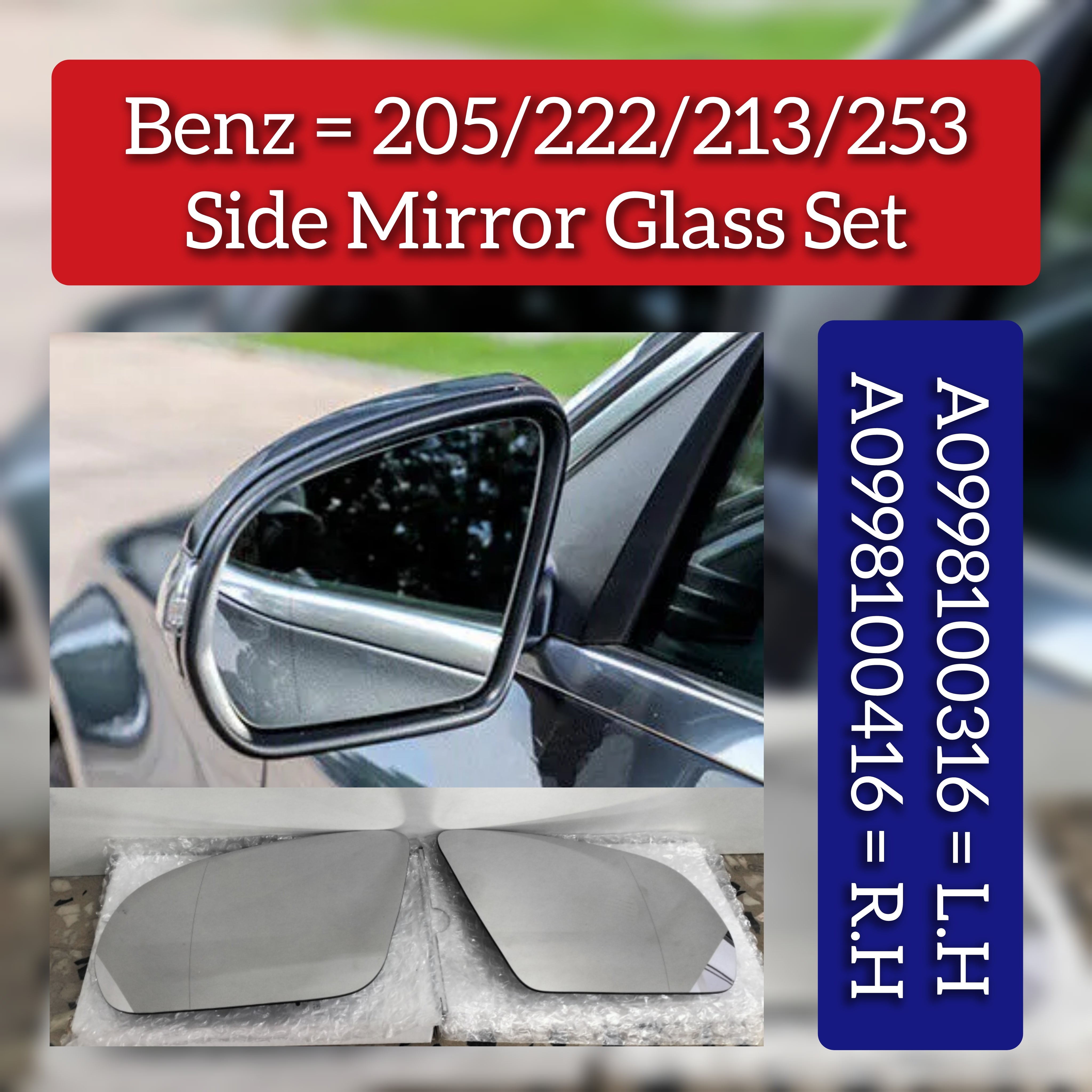 Enhance your driving experience with these high-quality left and right side rearview wing side mirror glasses. Specifically designed for MERCEDES BENZ C-CLASS W205, S-CLASS W222, E-CLASS W213, and GLC X253, these glasses provide clear and accurate reflection for safe and precise maneuvering. Trust in the compatibility and expertise of these mirror glasses.