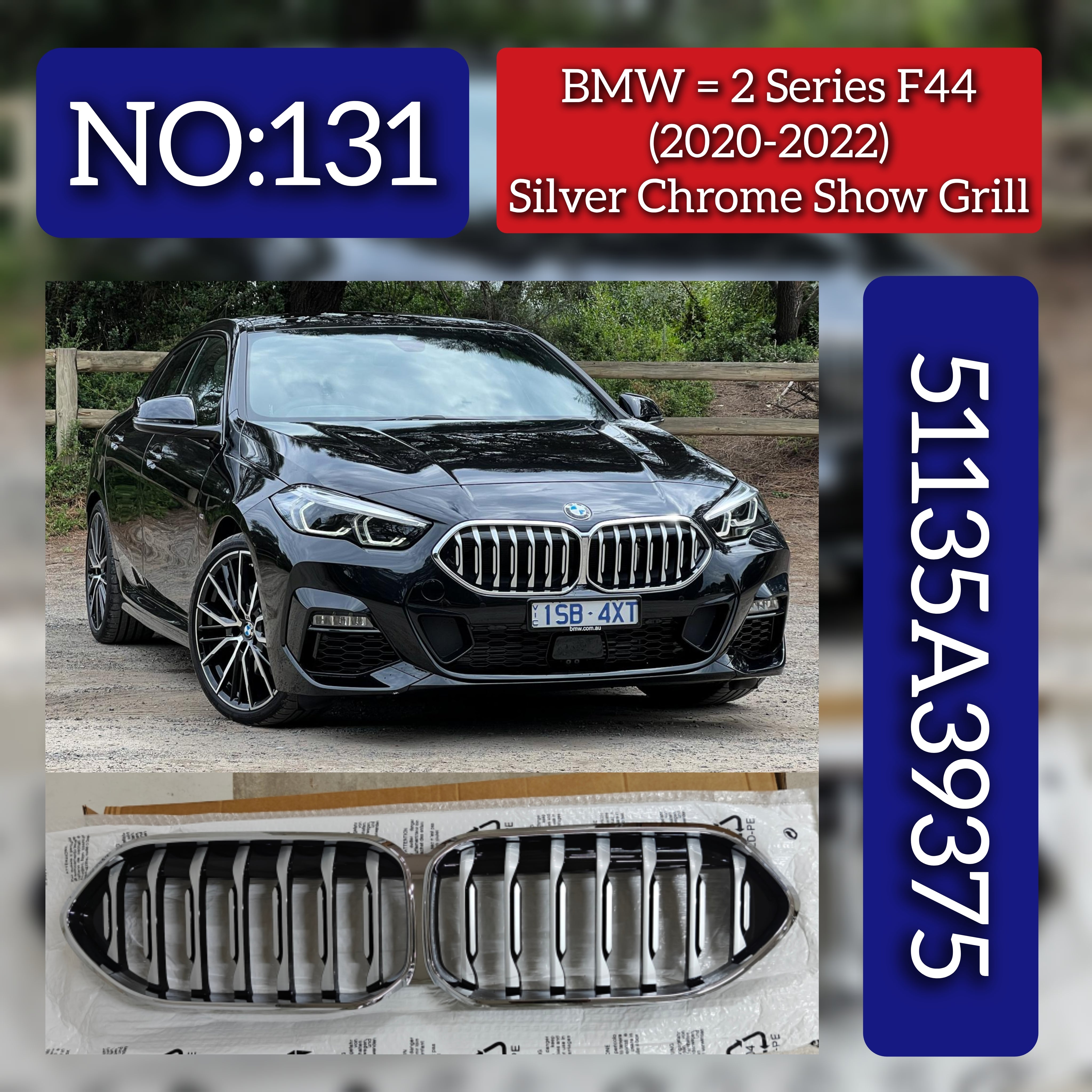 Enhance your BMW 2 Series (F44) from 2020 to 2022 with this Silver Chrome Show Grill, part number 51135A39375. Designed for seamless compatibility, it offers a sleek, polished finish that elevates your vehicle's front appearance while maintaining optimal airflow. Crafted for durability and precision fit, this grill assures both style and function for discerning BMW owners.