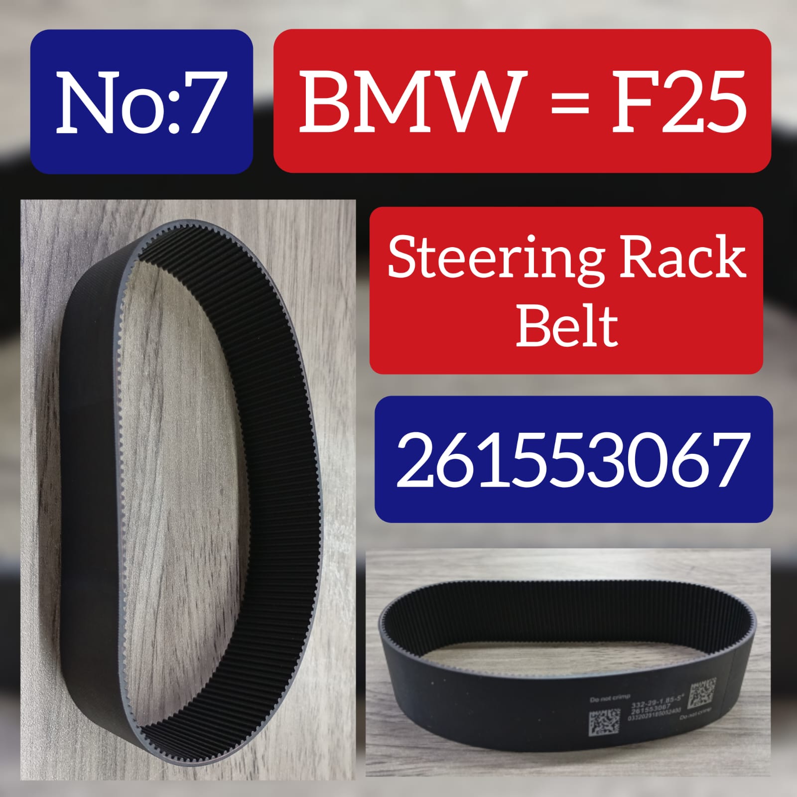 This steering rack belt is compatible with BMW X3 F25 Tag-07, providing reliable and efficient performance. Made with high-quality materials, it ensures smooth and precise steering, giving you a comfortable and safe driving experience. Improve your BMW's handling with this essential component.