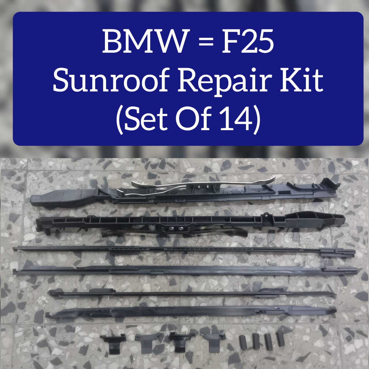 This comprehensive 14-piece sunroof repair kit is engineered specifically for BMW F25 models, delivering OEM-quality components for professional restoration. The complete set addresses common sunroof mechanism failures, including guide rails, seals, and actuator components that typically wear over time. Each part meets BMW specifications to ensure seamless integration and optimal functionality. Ideal for both authorized service centers and experienced DIY enthusiasts, this kit eliminates the need for multiple purchases and reduces downtime. Restore your sunroof's smooth operation and weathertight performance with precision-engineered replacements designed for your F25's exacting standards.