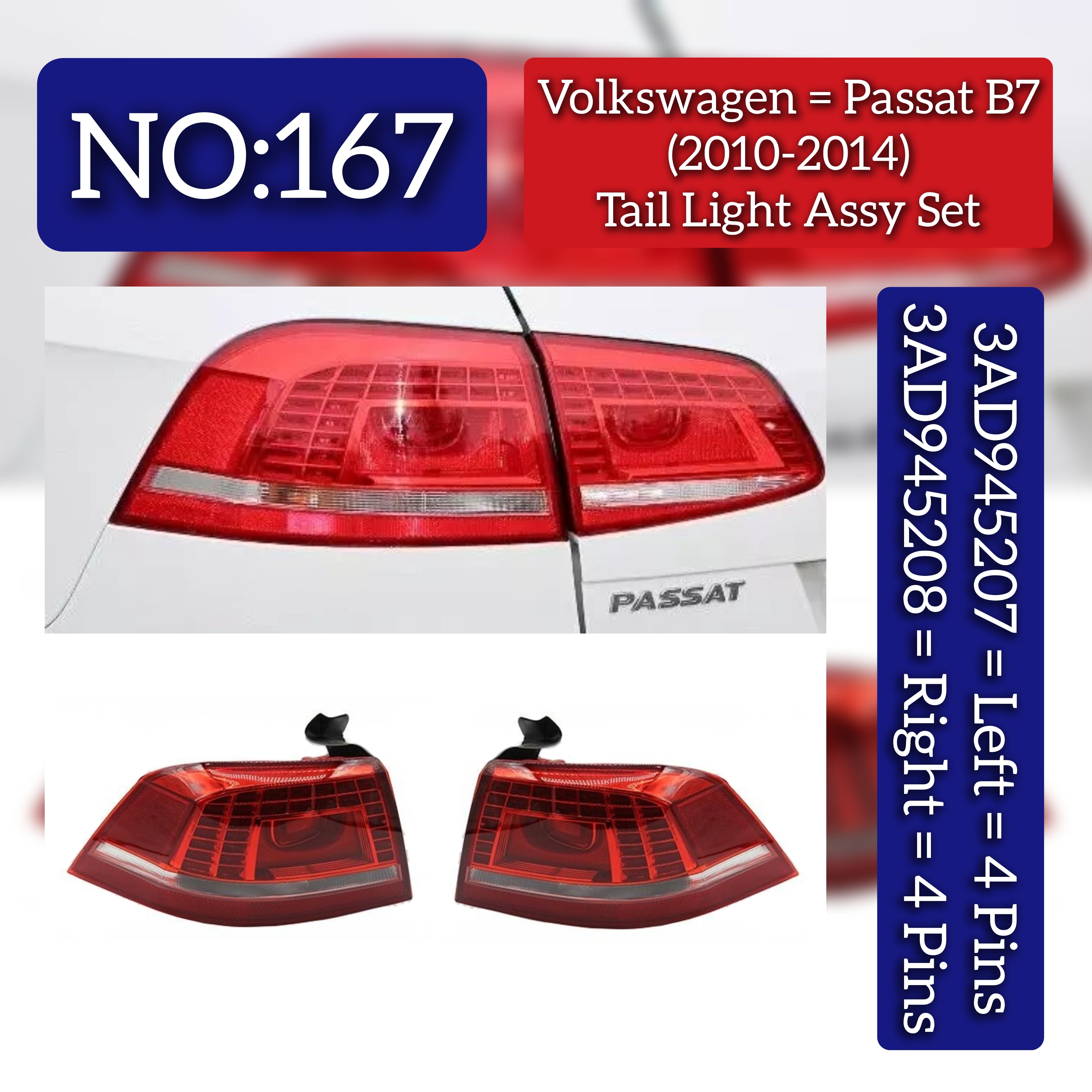 Enhance your VW Passat B7 (2010-2014) with this precise set of left (3AD945207) and right (3AD945208) tail lights. Engineered for perfect fit and reliable performance, these tail lights ensure optimal visibility and safety on the road. Crafted to meet OEM standards, they restore your vehicle’s rear lighting to its original condition, maintaining both style and function. Ideal for replacements or upgrades, this pair guarantees durability and seamless integration with your Passat B7.