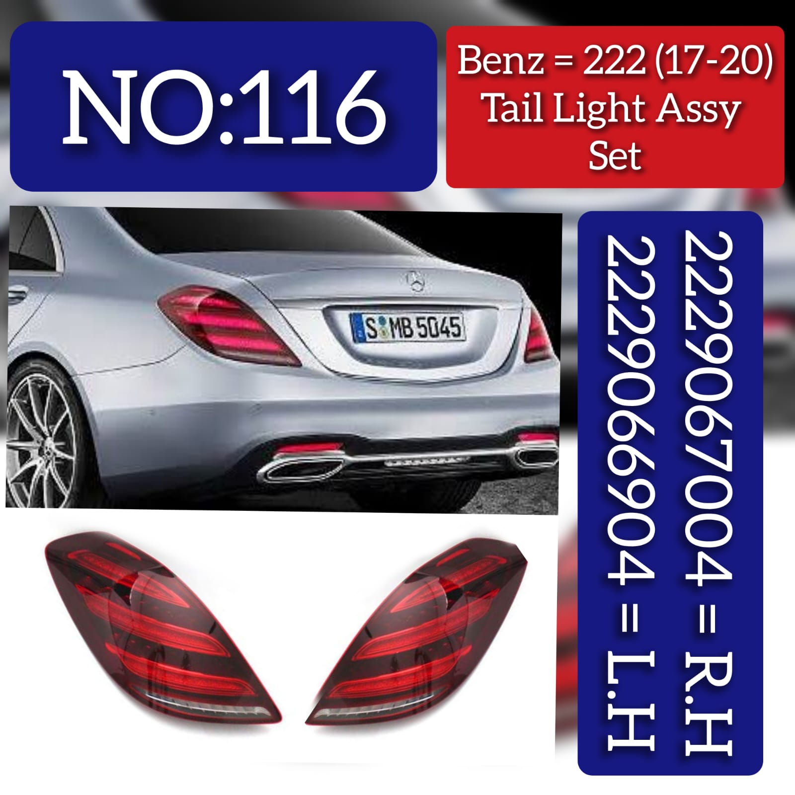 Upgrade your MERCEDES-BENZ S-CLASS (W222, V222, X222) with our high-quality Tail Light Rear Lamps. Specifically designed for the 2017-2020 models, these lamps come in a set of two, left and right. Illuminate your vehicle with precision and reliability, enhancing your driving experience.