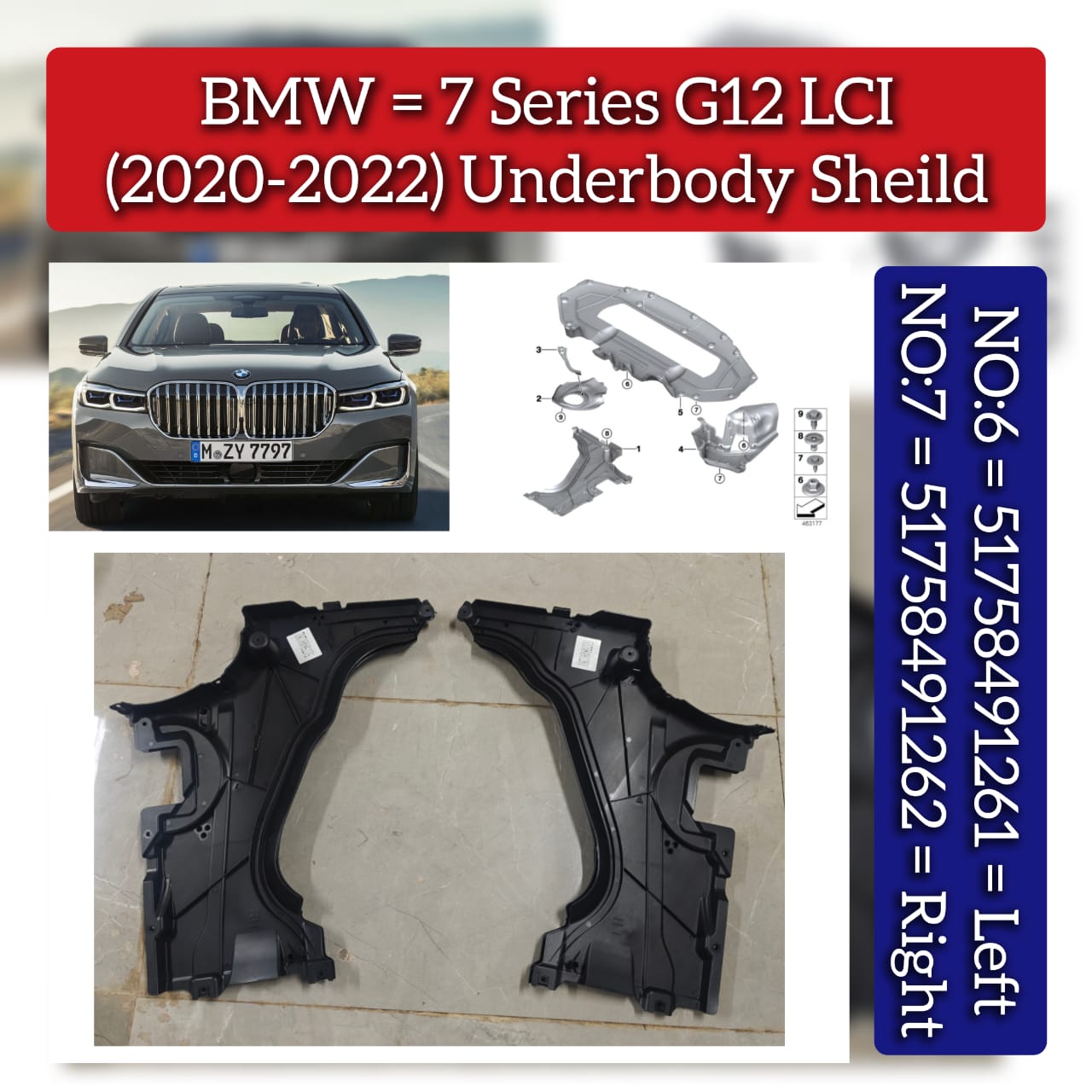 Guard your BMW 7 Series G12 LCI against undercarriage damage with this OEM-specification shield assembly. The complete left (51758491261) and right (51758491262) set provides comprehensive protection for vital powertrain and suspension components against road hazards, salt spray, and debris impact. Factory-engineered fitment ensures proper alignment and coverage without modification. A critical investment for maintaining structural integrity and protecting your vehicle's investment in India's demanding driving conditions.