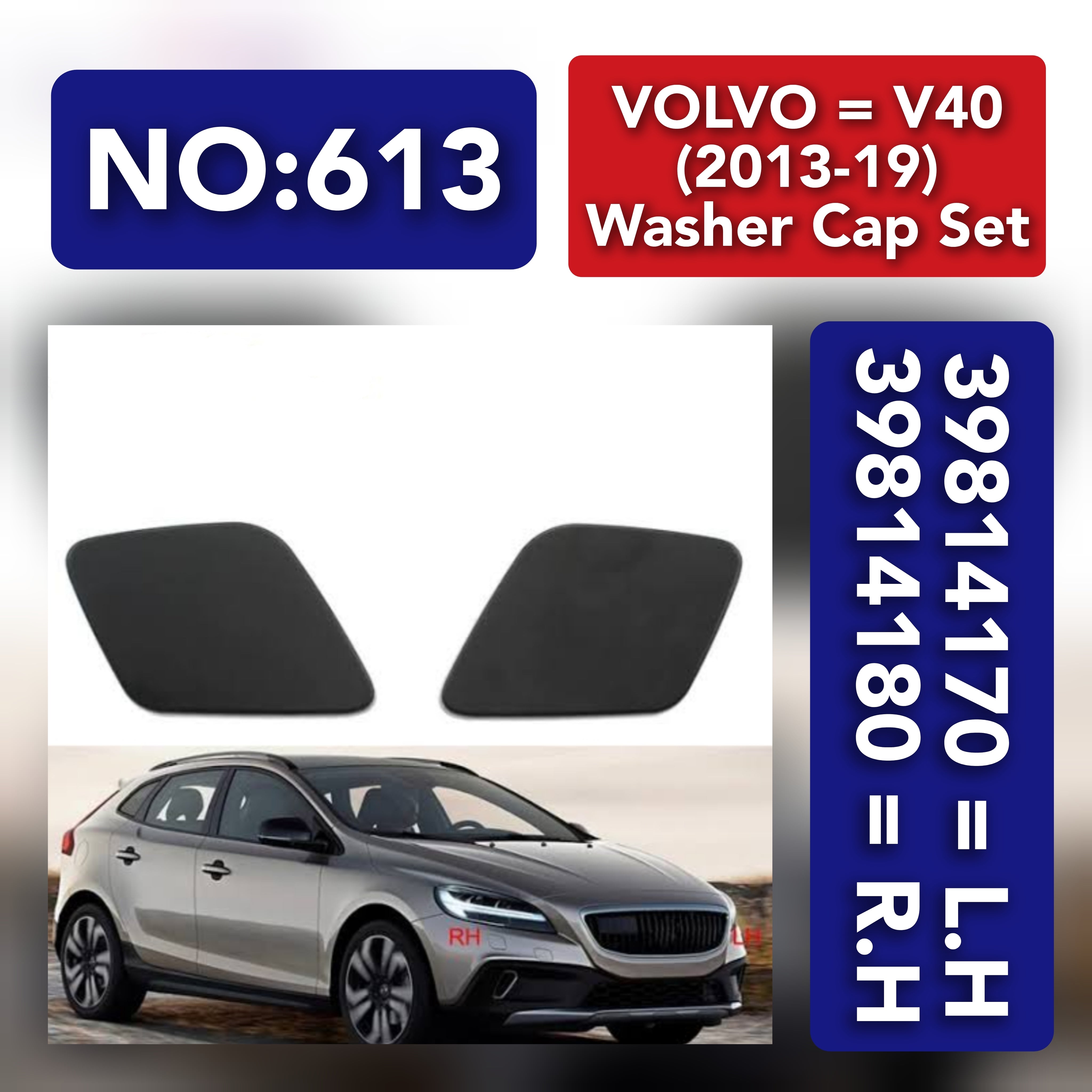 VOLVO = V40 (2013-19) Washer Cap Set.Ref No 39814170 = L.H, 39814180 = R.H Tag 613