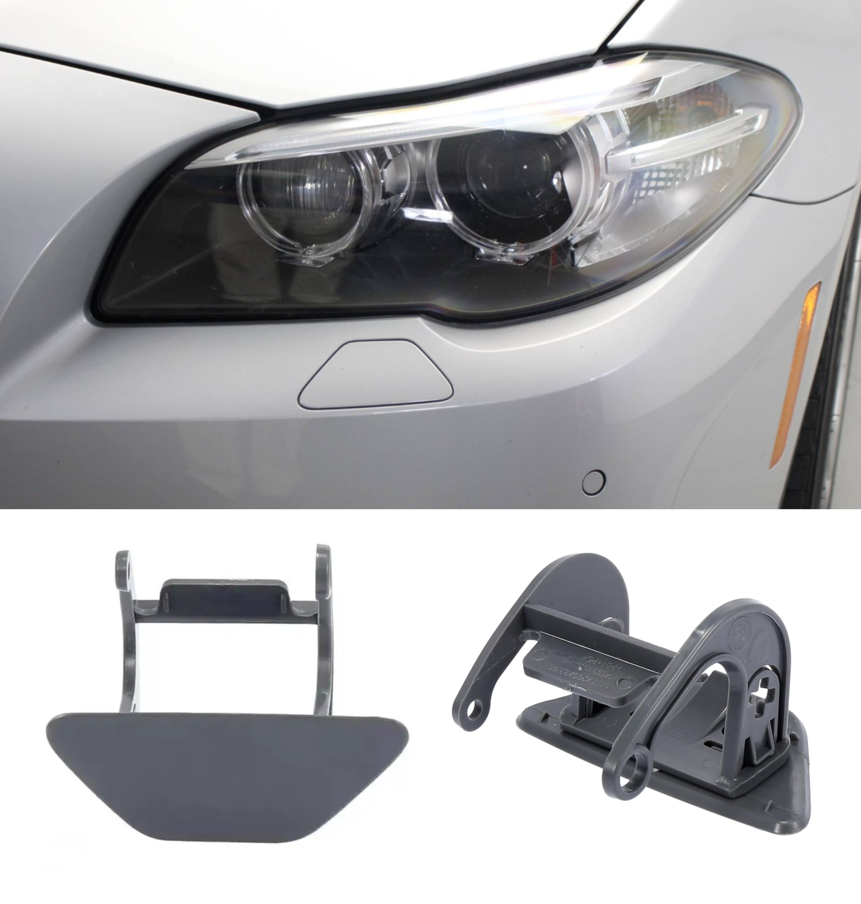 Genuine washer cap set for BMW 5 Series F10 models (2010-2013). This pair includes both left (51117246869) and right (51117246870) caps, engineered to fit perfectly with your vehicle's windshield washer system. Maintains optimal fluid containment and protects against debris and contamination. Direct OEM replacement ensures compatibility and reliable performance. Essential maintenance component for proper washer reservoir function.